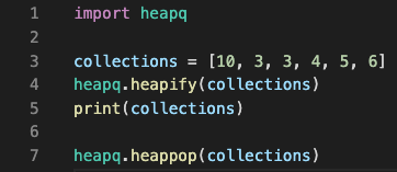 heapify 정렬을 하고 heappop 을 하면 최소값이 나오게됨 (3,3,4,5,6,10 이런식으로..)